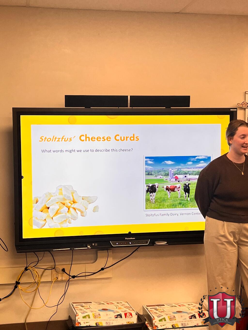 زار صف السيدة كرم للصف الأول الابتدائي صف الإرشاد التعاوني في كورنيل للإرشاد التعاوني وتحدثوا عن جبن نيويورك! وتعرفوا على جبن الشيدر واللبن الرائب والموينستر والجودة. وتمكنوا من تذوقها وتقييمها حسب الرائحة والطعم والملمس.