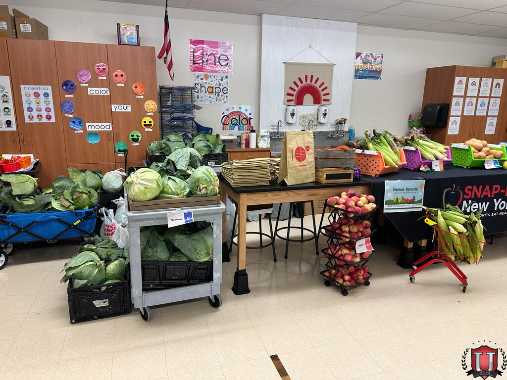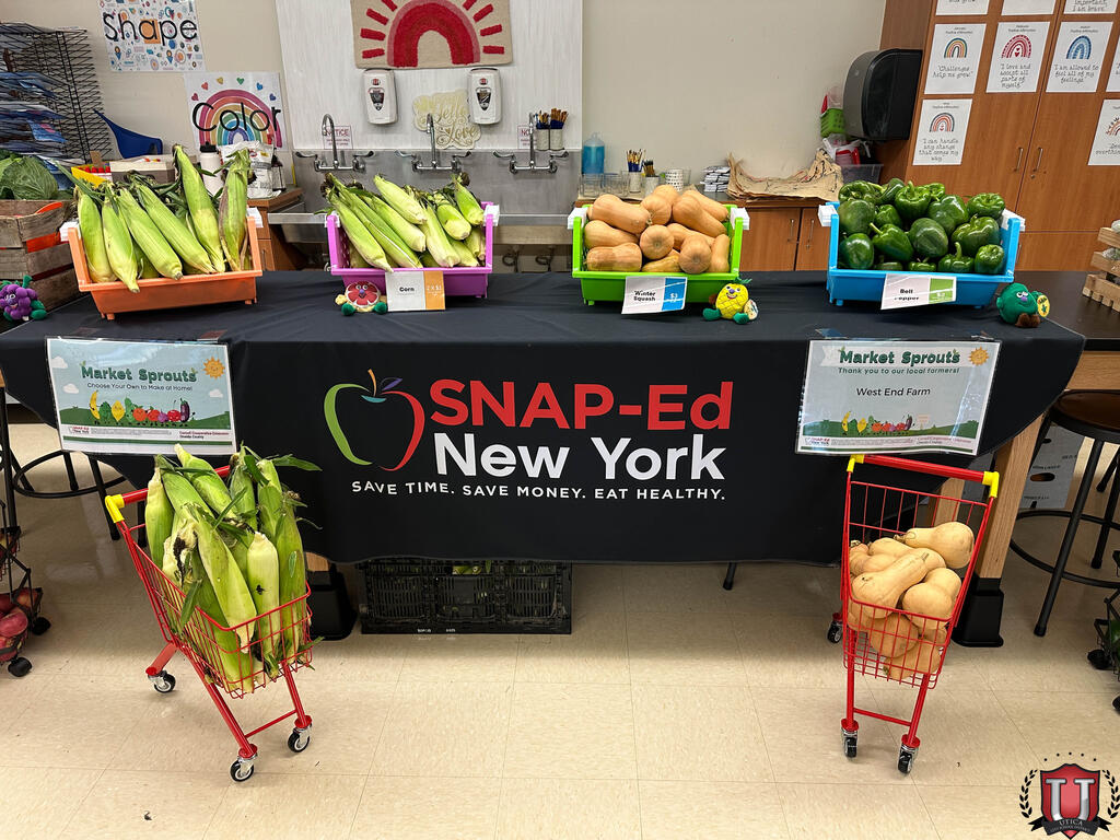 في 9 أكتوبر، أتيحت لطلاب مدرسة كولومبوس الابتدائية فرصة رائعة للتسوق لشراء الفواكه والخضروات اللذيذة في بقالة "براعم السوق" المنبثقة! تعد "براعم السوق" إضافة مثيرة لجلسات التثقيف الغذائي التفاعلية في SNAP-ED NY. تم إحضار هذه المبادرة الرائعة إلى كولومبوس من خلال التعاون مع Cornell Cooperative Extension of Oneida County و Central Region SNAP-Ed.