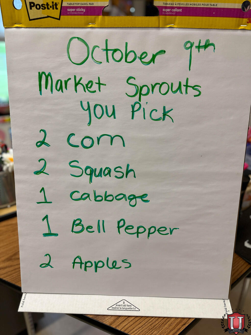 حصل الطلاب على 5 دولارات من "نقود "ماركت براعم السوق" وأُتيحت لهم حرية التسوق لشراء ما يختارونه من الخضروات من سوق المزارعين داخل المدرسة. يوفر هذا البرنامج للطلاب الفرصة لتجربة فواكه وخضروات جديدة وتعريفهم بالمنتجات المزروعة محلياً وتعليمهم كيفية تحضيرها في المنزل.