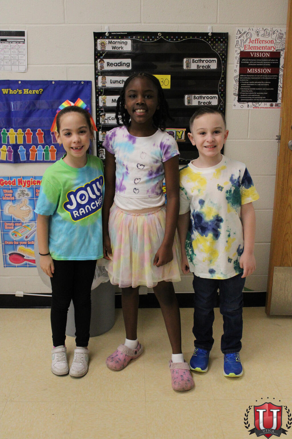 On Monday, March 16, Jefferson Elementary celebrated Tie-Dye Day! From classic spiral patterns to bold rainbow designs, our hallways burst with creativity and vibrant colors. Students and staff had fun showing off their tie-dye style. It was a fantastic day filled with school spirit and joy!