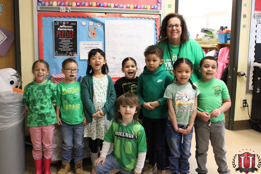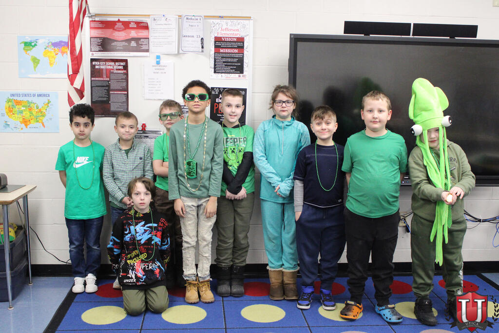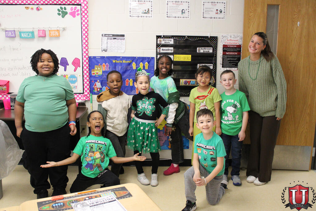 On March 17, Jefferson Elementary celebrated St. Patrick’s Day! Students and staff dressed head to toe in festive attire, embracing the spirit of the holiday. From bright shirts and fun accessories to lucky charms and shamrock decorations, the school was filled with cheerful, Irish-inspired flair. It was a wonderful way for everyone to celebrate together as a school community!