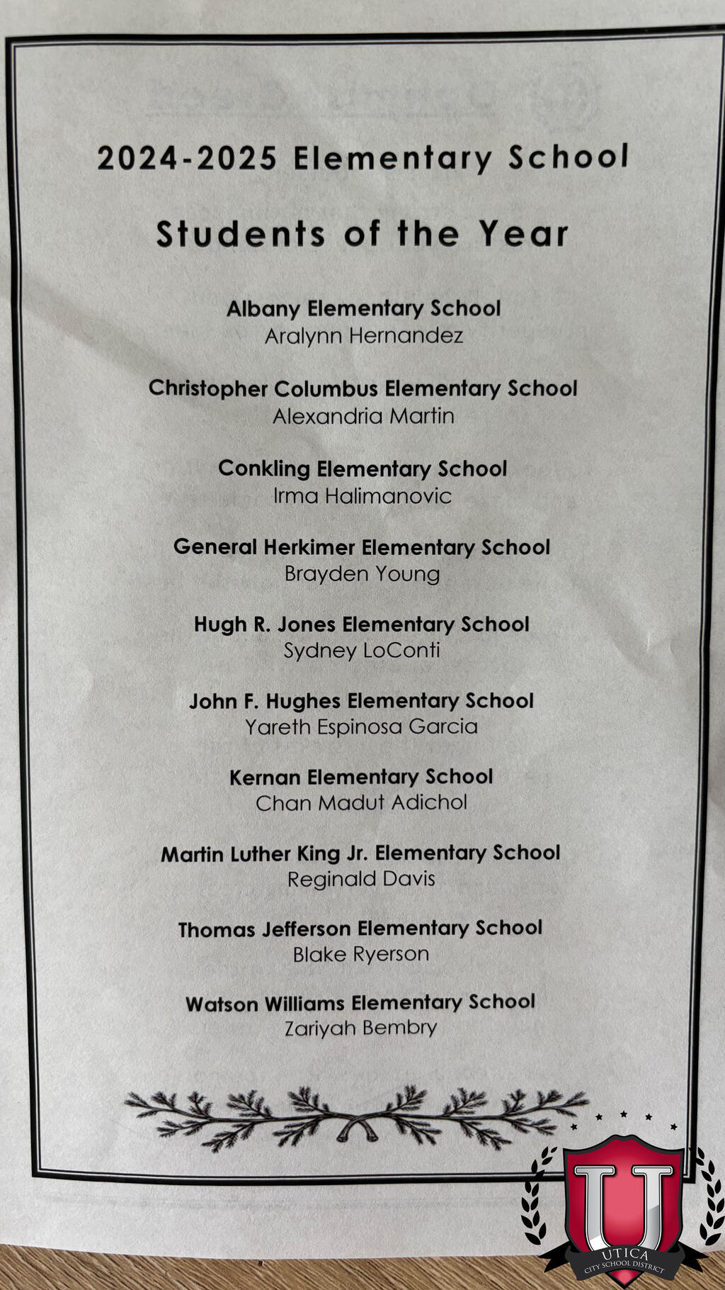 حصلت سيدني لوكونتي، طالبة الصف السادس في مدرسة جونز الابتدائية على "جائزة طالب العام"، برعاية نادي Utica الشرقية للمتفائلين. تُظهر سيدني مواطنة مدرسية جيدة، وهي طالبة أكاديمية قوية وتشارك في خدمة المجتمع. إنها نجمة متألقة في مدرسة جونز.